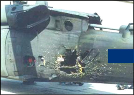 Έχει σημασία ότι ο άξονας που μεταδίδει την κίνηση στον ουραίο έλικα παρέμεινε άθικτος και λειτουργικός. Αυτό ήταν που επέτρεψε στο ελικόπτερο, αν και χτυπημένο να επιστρέψει. Το ότι επισκευάστηκε το συγκεκριμένο και επανήλθε σε υπηρεσία (χάρη στη σχεδίαση που επιτρέπει τέτοιας έκτασης επισκευές), είναι έως αδιάφορο. Το σημαντικό είναι πως δεν χάθηκε κάποιο στέλεχος και δεν καταρρίφθηκε. Ας δούμε μια χειρότερη κατάσταση: