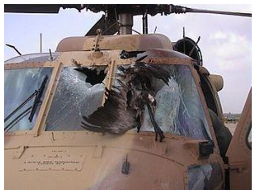 Μια διαφορετική φωτογραφία τώρα, με πρόσκρουση στο αλεξινέμιο ενός μεγάλου αετού. Το συγκεκριμένο UH-60L άντεξε και οι επιβαίνοντες έφτασαν στον προορισμό τους ασφαλείς.