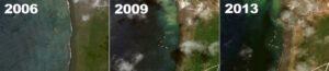 Οι γεωλογικές μετατοπίσεις των περασμένων δεκαετιών μετακίνησαν τα κουφάρια των πλοίων με ρυθμούς 25 ως 75 εκατοστών το χρόνο μέχρι που στις αρχές της πρώτης δεκαετίας του 2000 έγιναν ορατά με γυμνό μάτι. Σήμερα, πλέον, ολόκληρα τμήματα έχουν βγει στην ακτή και η απουσία ζωής στο νησί δείχνει πως θα παραμείνουν εκεί σαν βουβοί μάρτυρες μιας άλλης εποχής μέχρι που η φυσική φθορά θα τα εξαφανίσει.