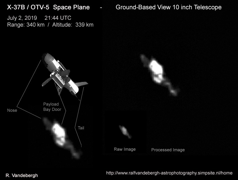 Πριν από λίγες ημέρες, στις 2 Ιουλίου του 2019, ο Ολλανδός ερασιτέχνης αστρονόμος Ralf Vandebergh κατάφερε και φωτογράφησε το X-37B στον νυχτερινό ουρανό. Ο Vandebergh έψαχνε το μη επανδρωμένο διαστημοπλάνο για μήνες, ώσπου τελικά, κατάφερε να το εντοπίσει τον περασμένο Μάιο. Όταν προσπάθησε να το παρατηρήσει ξανά τον Ιούνιο το X-37B είχε ήδη αλλάξει τροχιά. Χάρη στο δίκτυο ερασιτεχνών παρατηρητών δορυφόρων και ερασιτεχνών αστρονόμων το αεροδιαστημοπλάνο εντοπίστηκε ξανά. Αυτή την φορά ο Vandebergh κατάφερε και πήρε τις απαραίτητες φωτογραφίες.