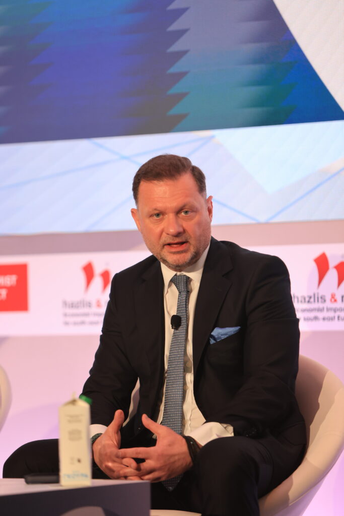 Τόνισε ότι οι υποδομές πρέπει να είναι dual use, εξυπηρετώντας εμπορικές και αμυντικές ανάγκες τόσο για την Ελλάδα όσο και για την ευρύτερη περιοχή, προσφέροντας ολοκληρωμένες λύσεις για τη γαλάζια οικονομία, την ενεργειακή ασφάλεια και τις εναλλακτικές οδούς μεταφοράς. Σημείωσε επίσης ότι σε τρεις εβδομάδες ο Όμιλος θα παρουσιάσει τις ικανότητες της χώρας στην παραγωγή του «εθνικού πλοίου».