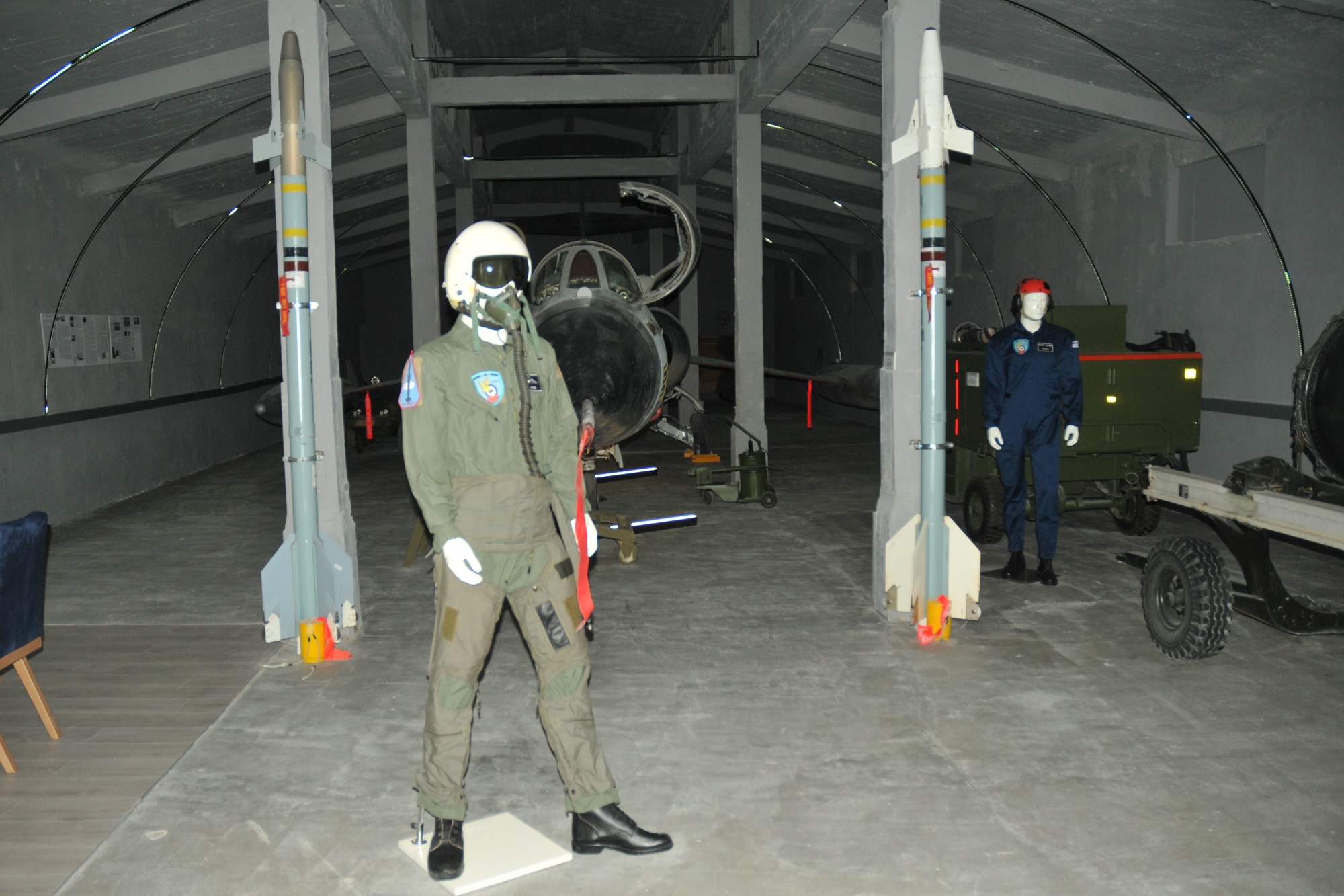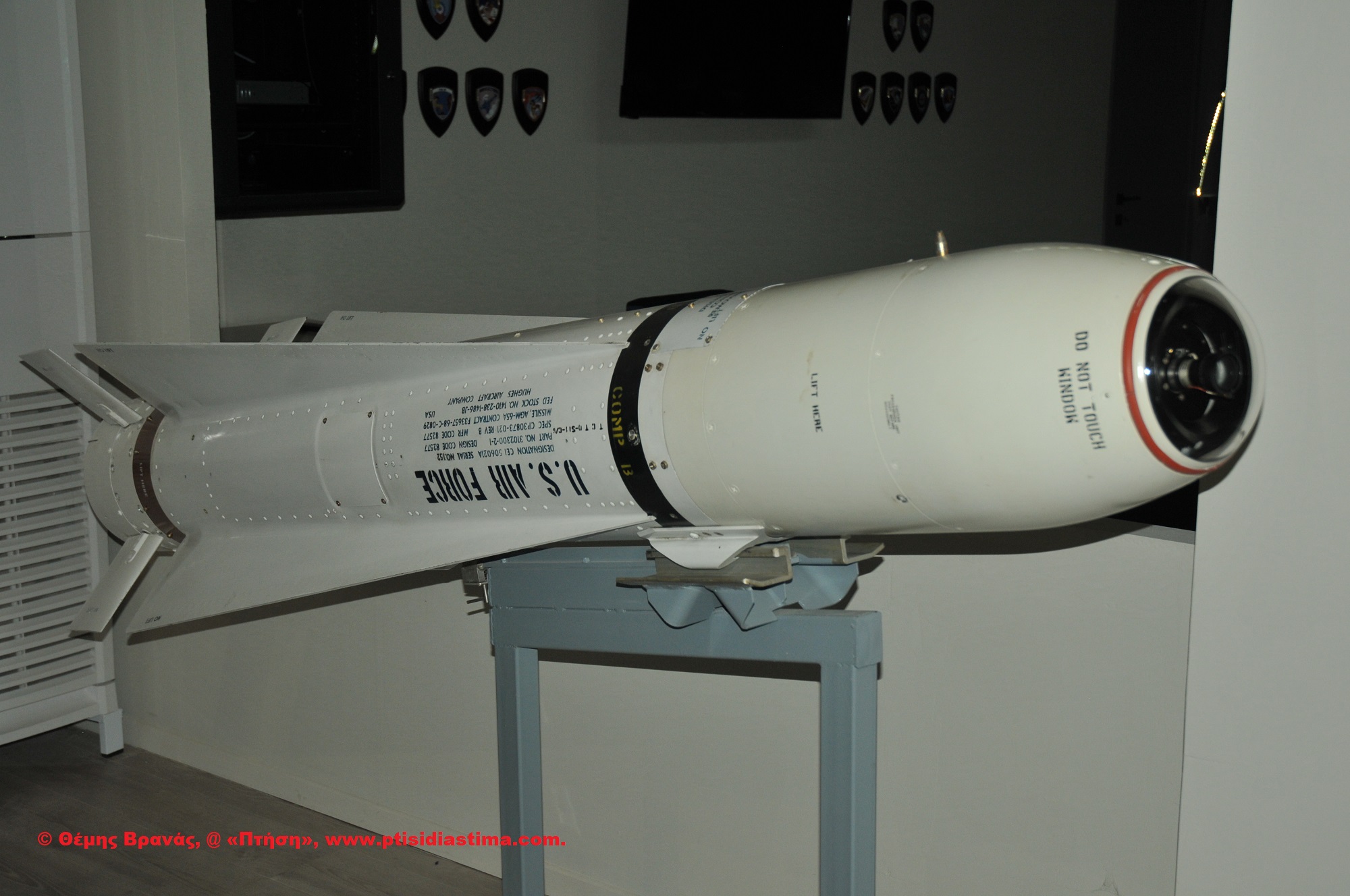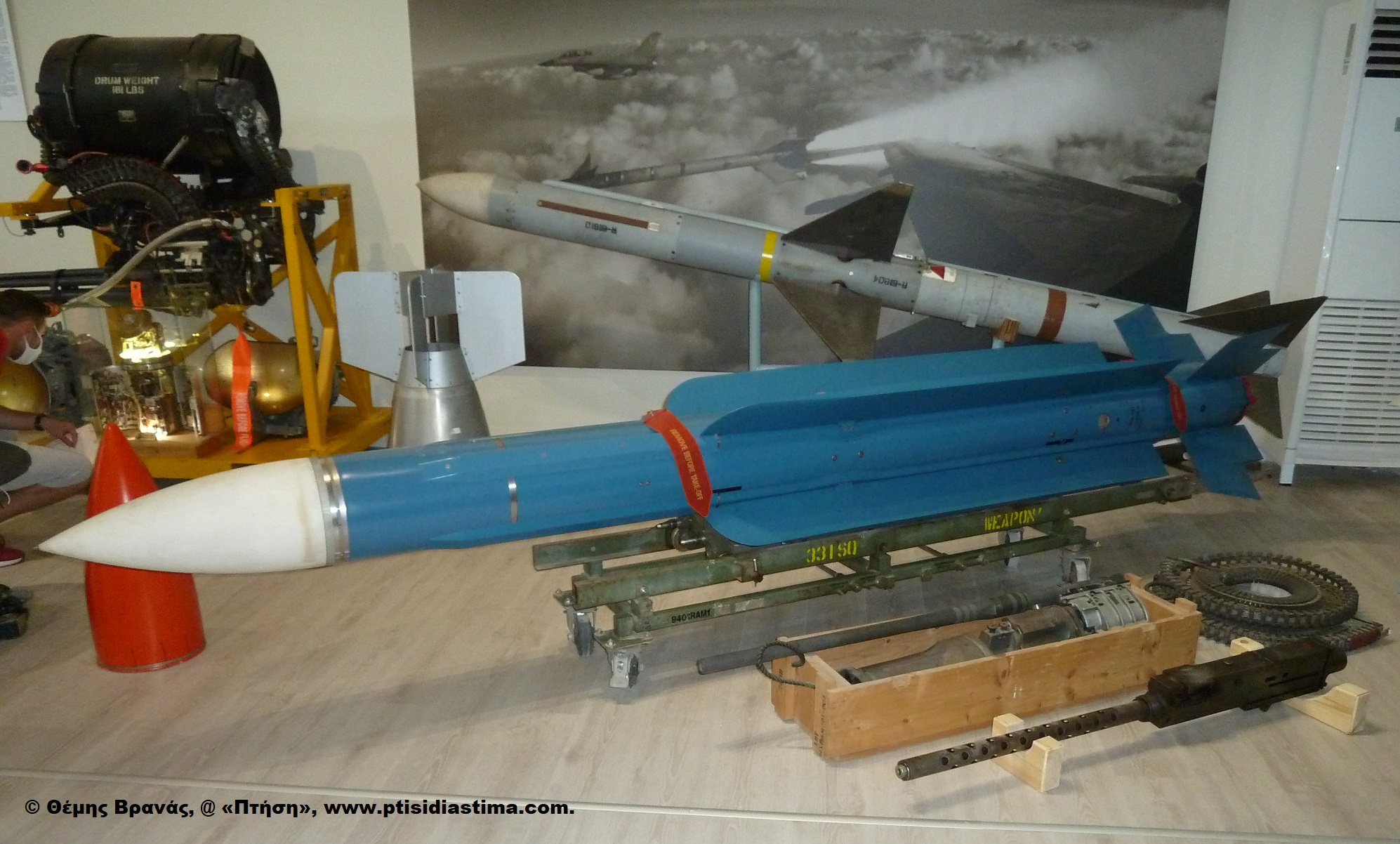 Πύραυλος αέρος-αέρος Matra Super530D με χρωματισμένα γαλάζιο σώμα και πτερύγια, ο οποίος από το 1996 εξόπλισε τα ελληνικά Mirage 2000 EGΜ/BGΜ. Πίσω του διακρίνεται AIM-7 Sparrow των F-4E και μπροστά του πυροβόλο Pontiac M39 των 20 mm αεροσκάφους F-5A μέσα στο ξύλινο κουτί του. Σε πρώτο πλάνο, πολυβόλο Colt-Browning M3 των 12,7 mm από τα παλαιότερα F/RF-84F.