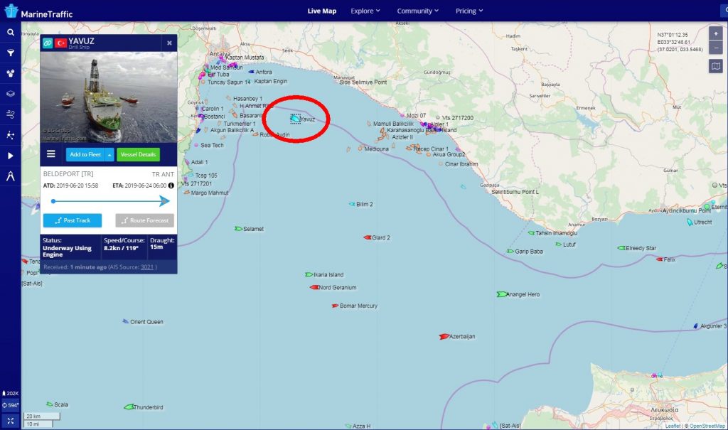 Προ ολίγων ωρών, το Yavuz αναχώρησε από την Αττάλεια με κατεύθυνση προς το χώρο γεώτρησης «Karpaz-1» (Καρπασία, στα Κατεχόμενα της Κύπρου)