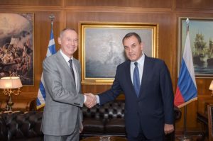 O Υπουργός Εθνικής Άμυνας κ. Νικόλαος Παναγιωτόπουλος είχε σήμερα συνάντηση, με τον Πρέσβη της Ρωσικής Ομοσπονδίας κ. Αντρέι Μ. Μασλώφ (AndreyM. Maslov), κατά την οποία συζητήθηκαν θέματα διμερούς αμυντικής συνεργασίας καθώς και οι εξελίξεις στην Ανατολική Μεσόγειο, που επηρεάζουν την ασφάλεια και την σταθερότητα στην ευρύτερη περιοχή.