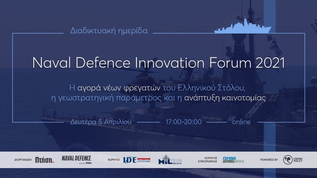 Διαθέσιμο, μετά από ειδική επεξεργασία για εύκολη αναζήτηση είναι το βίντεο της διαδικτυακής μας Ημερίδας, NavalDefence Innovation Forum 2021. H Crowdpolicy, πάροχος των υπηρεσιών διοργάνωσης, επεξεργάστηκε το βίντεο, και το ανέβασε στο YouTube προκειμένου να είναι διαθέσιμο στο ευρύ κοινό.