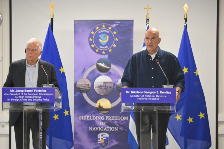 Στο πλαίσιο της επιχείρησης, επισήμανε ο κ. Μπορέλ, «έχουν καταστραφεί 19 drones και πύραυλοι των Χούθι».