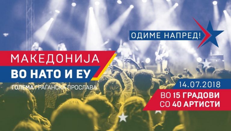 Оваа сабота, на 14 јули, да се обединиме и заедно да го прославиме историскиот успех на #Македонија. Започнуваме нова приказна со поканата за членство во #НАТО и датум за преговори со #ЕУ. #ОдимеНапред – Македонија во НАТО и ЕУ!
