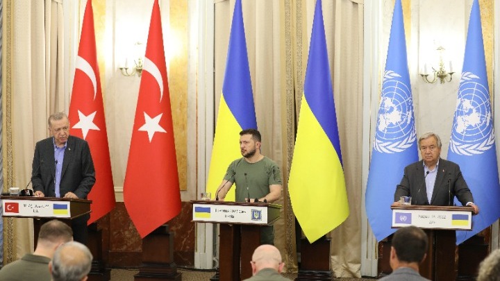 Σε συνέντευξη Τύπου μετά την ολοκλήρωση της τριμερούς με τον πρόεδρο της Τουρκίας Ρετζέπ Ταγίπ Ερντογάν και τον γενικό γραμματέα του ΟΗΕ Αντόνιο Γκουτέρες, ο Ζελένσκι δήλωσε σχετικά με την προοπτική εξεύρεσης διπλωματικής λύσης για τον τερματισμό του πολέμου: «Άνθρωποι που σκοτώνουν, βιάζουν, χτυπούν τις πόλεις μας με πυραύλους καθημερινά, δεν μπορούν να θέλουν ειρήνη. Πρέπει πρώτα να αποχωρήσουν από το έδαφός μας και ακολούθως βλέπουμε…».